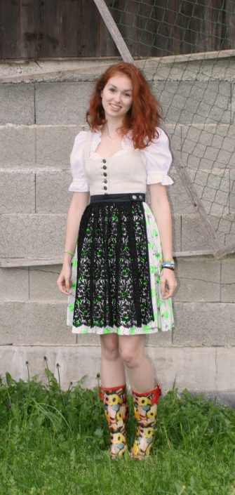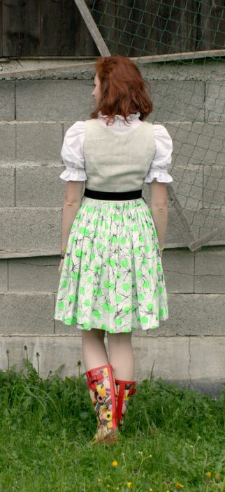 Meine Stoffsammlung ist mittlerweile sehr groß, daraus entstehen liebend gerne außergewöhnliche Projekte. Hier ein Dirndl bei dem der Oberstock/ das Oberteil aus einem alten Hausleinen, der Rock aus einem Fundstück bei meiner Oma und die Schwürze aus einem Reststück meines Maturaballkleides gefertigt ist.